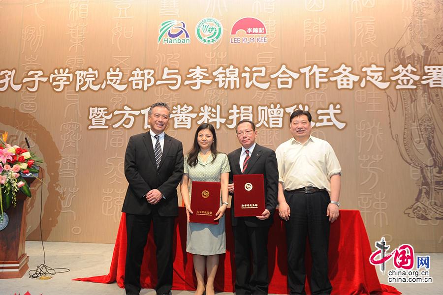 2012年,李锦记酱料集团主席李惠中与孔子学院总部在北京签署合作备忘录