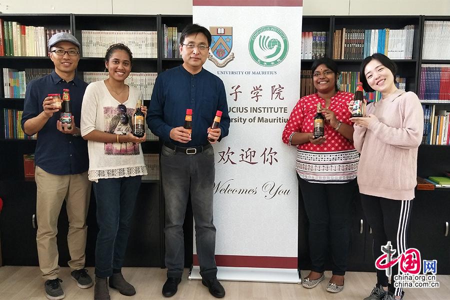李锦记捐赠的酱料产品得到毛里求斯大学孔子学院志愿者师生的热烈欢迎