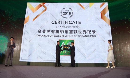 7月10日,金典有机奶获得“有机奶销售额世界纪录”。吉尼斯世界纪录大中华区总经理马克将认证授予了金典有机奶,并宣布:“基于独立的第三方市场调查数据统计,金典有机奶已成为有机奶销售额世界纪录保持者”。有机奶代表了乳品的最高品质,十年中,金典首创有机品类、制定行业标准、培育市场消费,带动了整个有机乳业的蓬勃发展,在满足消费升级的同时,也用品质赢得了消费信赖,成就了自身的市场领先。