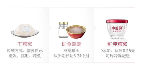干燕窝和即食燕窝产品都存在消费痛点。干燕窝原料难鉴别、不知如何炖、没有时间炖、不懂如何吃;即食燕窝是罐头食品,储存时间长、不够新鲜营养,无法满足人们对燕窝滋补的基本需求。