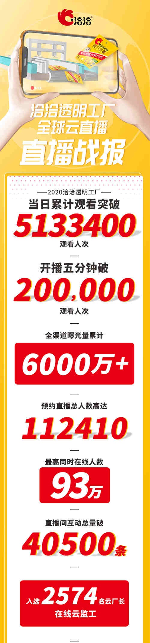 全网有关“洽洽透明工厂全球云直播“、”够新鲜敢透明“等相关内容曝光量累计超6000万。