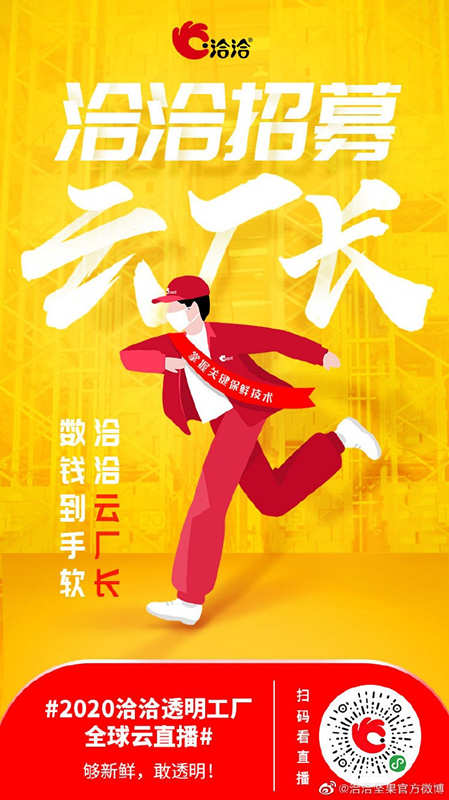 为了让更多的公众参与以及增强消费者互动,共同推动透明机制的建立,洽洽官方发布了洽洽云厂长招募活动,号召网友成为洽洽云厂长,一起网上云监工,瓜分20万元大奖,共同见证新鲜品质好坚果的诞生。活动一经上线便受到广大网友的喜爱。