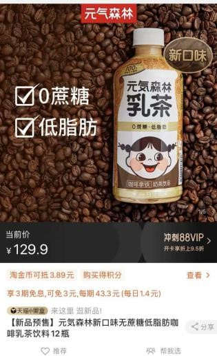 官方资料显示,元气森林此次推出的新品咖啡乳茶,依然坚持了0蔗糖,并且在原料的选择方面采用了优质新西兰奶源、印度红茶、阿拉比卡咖啡。“健康”+“高品质”,让这款产品一上架就成功吸粉。