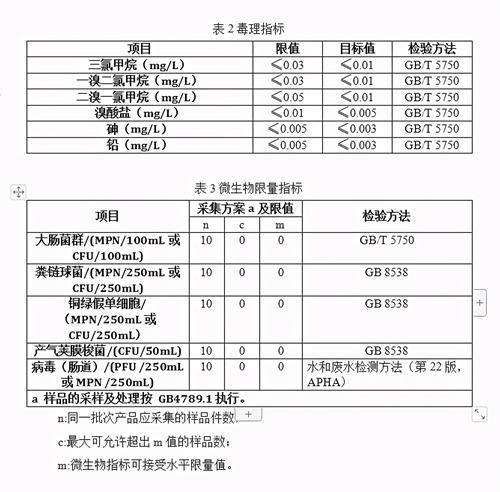 2.健康饮用水应符合表2、表3的要求,保证用户饮用水安全。