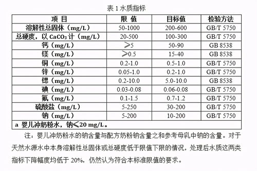 3.健康饮用水应符合表1溶解性总固体指标,同时满足其余10项中的5项及以上,保持水中矿物离子的种类和均衡。