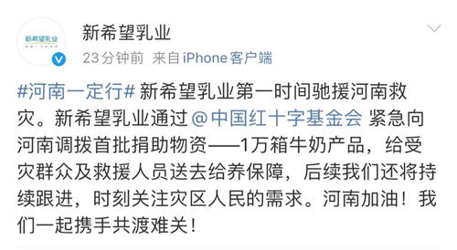 新希望乳业首批捐助一万箱牛奶,紧急驰援河南