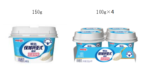 规格上,为配合中国消费者的酸奶食用习惯,我司将作为核心产品的原凝固型系列的180g规格的产品下调至更容易一次性食用完毕的150g规格,并作为全新产品上市销售。150g与400g产品的容器材质进行了更新,外观更显高级感。另外,根据调查结果显示,大部分喜爱食用纯味酸奶的消费者没有使用白砂糖包的习惯。为配合消费者这一食用实态,本次“明治保加利亚式酸奶 纯味不甜”400g和150g规格的产品将不再附赠白砂糖包。