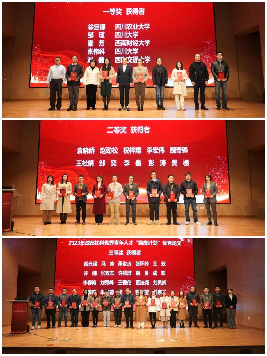此次研讨会邀请到了成都市人才发展促进中心、成都市委宣传部、共青团成都市委、四川大学、电子科技大学、四川省社科院、西南财经大学、四川农业大学、成都理工大学、西南交通大学、西南民族大学、成都大学、四川师范大学、重庆工商大学等近30家单位、高校院所的领导、专家及“雏鹰计划”青年人才120余人参会。活动中还对2023年成都社科青年人才“雏鹰计划”优秀论文的35名获奖青年人才颁发了荣誉证书。