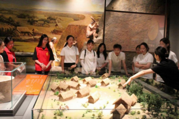 图为实践队参观宝墩遗址