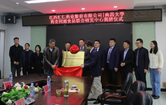 2024年12月5日,江西汇仁药业股份有限公司(以下简称“汇仁药业”或“汇仁”)与南昌大学食品科学与资源挖掘全国重点实验室(以下简称“南昌大学实验室”)共同成立的“药食同源食品联合研发中心”举行了揭牌仪式。
