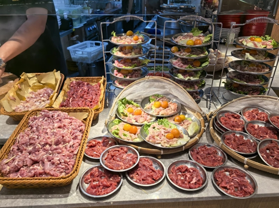 还新增设置了鲜货展示的明档场景,“骨汤现熬、码子现炒、鲜肉现切”主打食材新鲜,现点现制;以新鲜食材为主的特色产品,如“酸汤鲜切鸡丝粉、泡椒鲜切猪杂粉、招牌鲜切砍肉粉、酸汤生滚黄牛肉粉“等鲜货王牌产品。明档现制的鲜货市集,既保留“传统手工”的烟火气,又实现高效出餐的标准化。门店肉类和蔬菜类食材都是每天早上新鲜采购的,确保顾客吃到的都是热鲜的好食材,能让顾客亲眼见证“鲜”的诞生!