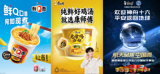 鲜Q面通过创新工艺,以“宛如现煮”突围品类赛道;老母鸡汤面凭借独家“专利锁鲜”技术,将鸡汤的“纯鲜”最大程度保留。此外,康师傅作为全国首个应用航天专利的方便面企业,其产品应用了航天专利温控技术,进一步夯实品质,让“世界卓越的航天专利方便面”成为更多消费者的选择。
