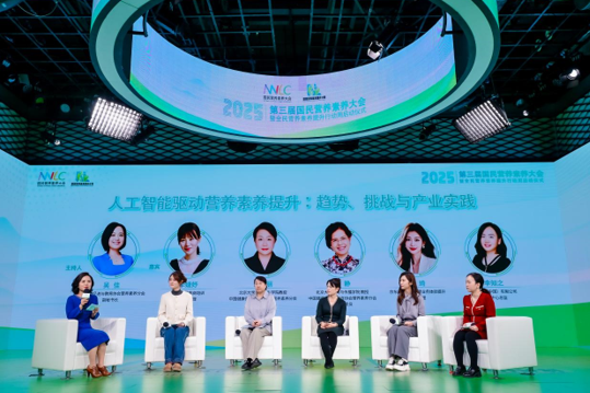 圆桌论坛环节,中国健康促进与教育协会营养素养分会副秘书长吴佳主持,北京大学公共卫生学院教授朱文丽、北京大学新闻与传播学院教授许静等行业专家,与健合集团电商培训高级经理李婕妤、无限极(中国)有限公司营销总监李知之、京东健康营养保健业务体验提升高级经理张琦等企业代表,围绕“人工智能驱动营养素养提升:趋势、挑战与产业实践”主题展开深度研讨。嘉宾一致认为,在公众健康需求日益复杂、个性化背景下,人工智能正成为推动营养健康从“疾病管理”向“健康管理”转型的重要工具。