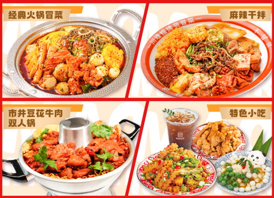 产品端:回归本味,品质为核。不同于行业“过度创新”导致的口味失真,帽牌货冒菜的产品升级始终围绕消费者味蕾展开,保留经典火锅冒菜、麻辣干拌等核心味型,推出适配大众口味的老成都冒菜,兼顾川味正宗与川外消费者受众接受度。冒菜+小吃的组合,丰富消费场景、增强品牌竞争力,同时,小吃的低操作难度、高毛利特性,能进一步降低加盟商的运营成本和风险,助力门店稳定盈利。为了缓解淡旺季差异,研发推出小火锅、麻辣香锅等四季适配产品,有效平衡门店淡旺季营收。更多新品不断研发中,2026年会持续上新。