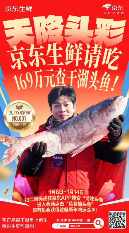 京东通过线上抽奖方式,将拍下的头鱼免费送给京东用户