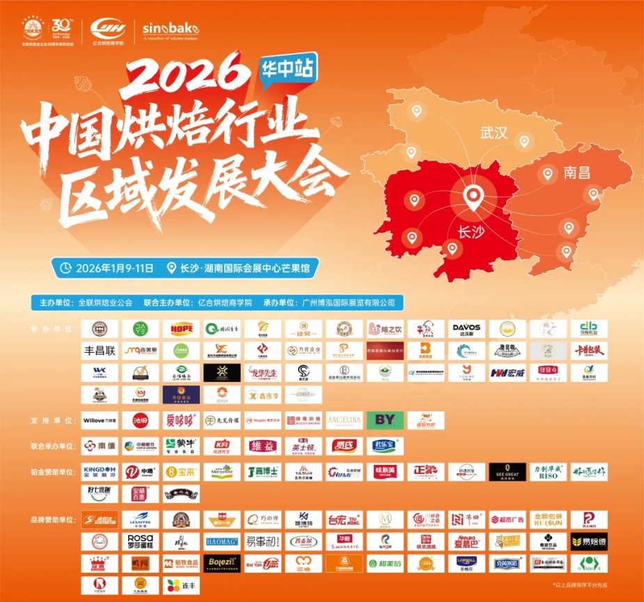 2026年1月9日至11日,2026中国烘焙行业区域发展大会(华中站) 在长沙成功举办。本次大会以“穿越周期·重启增长”为主题,汇聚了150余家行业头部品牌,展出规模近10000平米,成为华中地区烘焙行业的开年盛会。