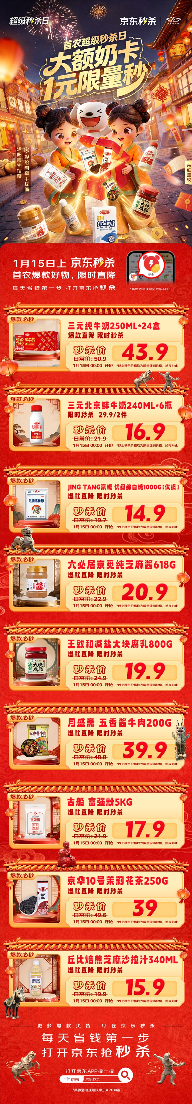 京东首农超级秒杀日1月15日开启 大额奶卡1元限量秒