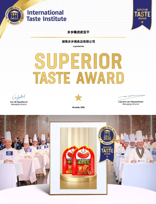 作为农业产业化国家重点龙头企业,乡乡嘴同时也是《非发酵豆制品》国家标准制定单位之一,此次连续两年蝉联销量第一并获尚普咨询认证,也是品牌硬实力与行业影响力的双重印证。值得一提的是,就在本月初,乡乡嘴虎皮豆干还斩获被誉为“食品界奥斯卡”的国际美味奖,实现权威认证与国际口碑的同步突破。