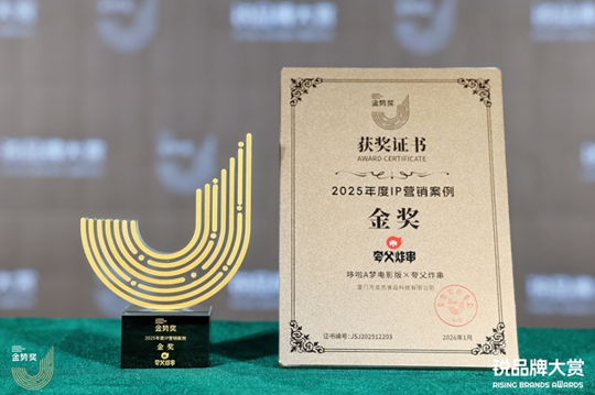 1月15日,第六届金势奖·锐品牌大赏颁奖典礼在上海圆满落幕。夸父炸串凭借哆啦A梦电影版IP联名项目,以极具创意的视觉呈现与销量提升赋能,在众多参赛案例中脱颖而出,荣获2025年度IP营销案例金奖。这一行业权威奖项,不仅肯定了夸父炸串在品牌创新与营销实效方面的卓越能力,也彰显了其IP商业化运营的标杆价值。