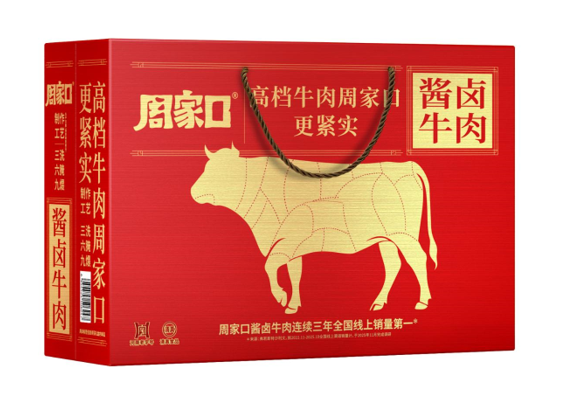 在健康属性上,周家口牛肉配料表干净,无淀粉、亚硝酸盐及防腐剂,高蛋白的特点,契合家庭佐餐、健身人群代餐、白领便捷加餐等多元需求。新春限定礼盒采用红金配色,印刻河南老字号标识与百年非遗工艺介绍,喜庆大气显档次,无论是走亲访友馈赠,还是企业团购发福利,都能完美适配。