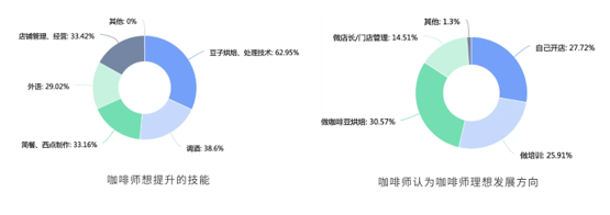 不管是咖啡师想提升的技能,还是职业发展方向,受访咖啡师对咖啡烘焙都给予了很高的关注,选择做咖啡烘焙的比例达到30.57%,超过自己开店、做培训和做管理。