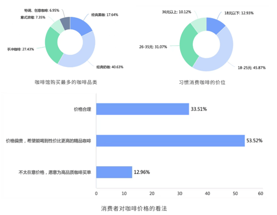 在消费者购买最多的咖啡种类中,特调、创意咖啡的比例只占到6.95%,手冲咖啡占到了27.43%。超过半数的受访者认为咖啡价格偏贵,希望喝到更具性价比的精品咖啡。