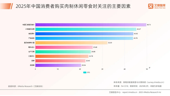 iiMedia Research(艾媒咨询)发布的《2025年中国肉制休闲零食行业发展状况与消费行为调查数据》显示,2025年中国休闲零食行业规模为11804亿元,2027年预计将达到12378亿元。随着休闲零食市场规模的扩大,肉制食品从餐桌上的硬菜,摇身一变成为下午茶、追剧时的好搭子。