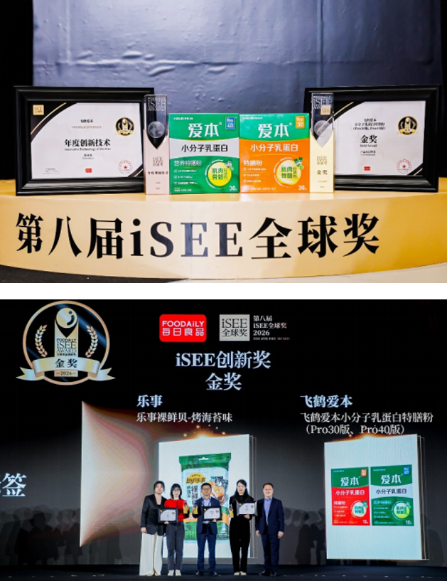 近日,素有“食品界诺贝尔”美誉的iSEE全球奖颁奖典礼在2026全球食品饮料创新博览会同期举行。飞鹤爱本凭借对中老年行动力健康的深刻洞察,以及持续的技术创新与差异化品牌战略,一举拿下两项重磅大奖——乳蛋白鲜萃提取科技,获技术类年度创新技术奖;应用该技术的飞鹤爱本小分子乳蛋白特膳粉系列,获产品品牌类金奖。